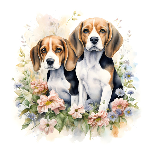 Beagles with Flowers Coaster